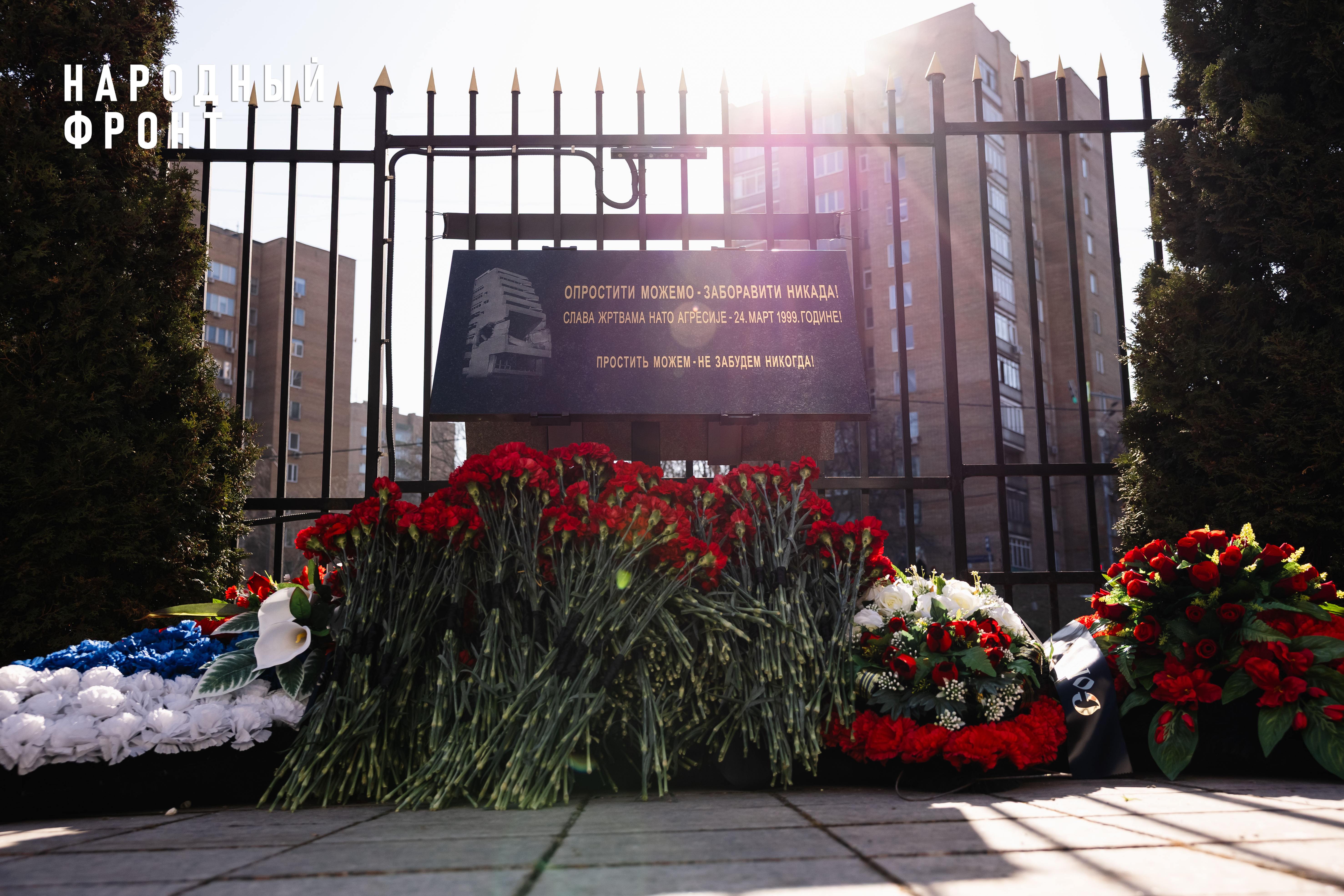 На спомен-плочу у дворишту Амбасаде венце и цвеће положио је колектив Амбасаде на челу са амбасадором Момчилом Бабићем, као и представници организације „Народни фронт“ предвођени шефом извршног комитета организације Михаилом Кузњецовом.